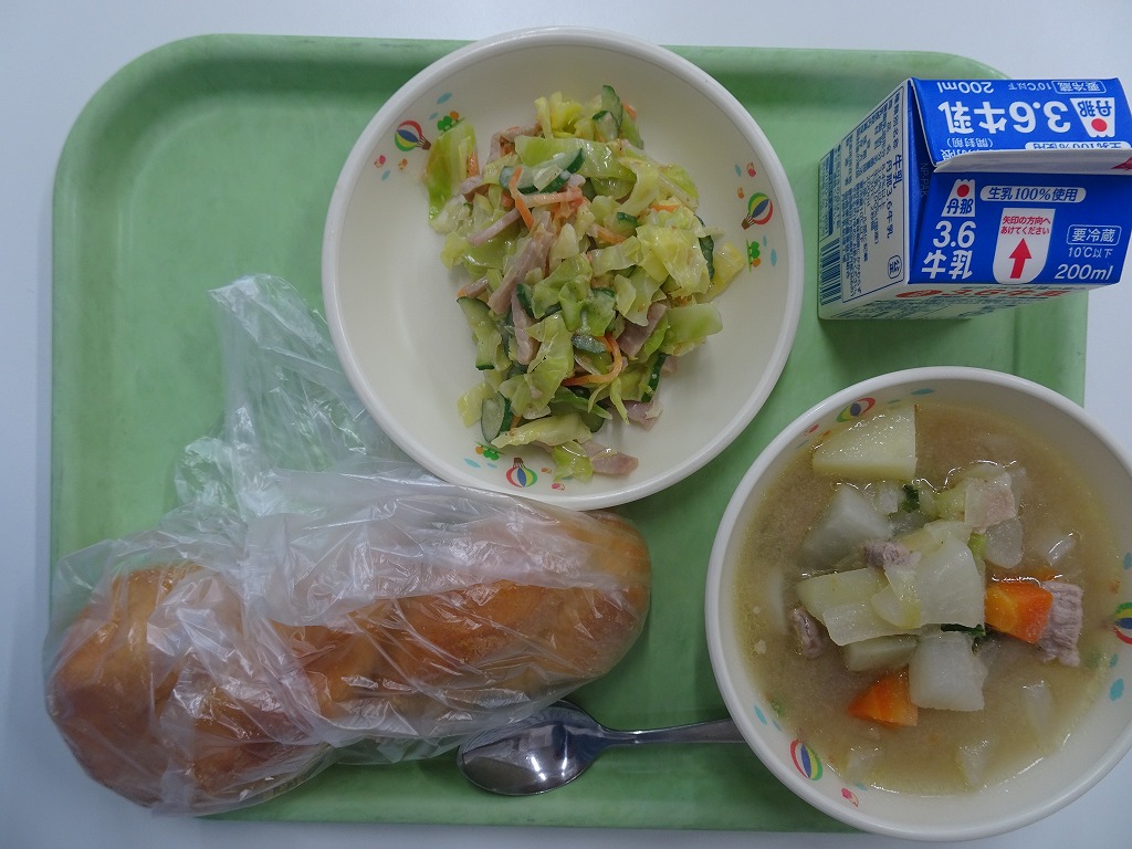 3/10(火)きなこあげパン コールスローサラダ ポトフ