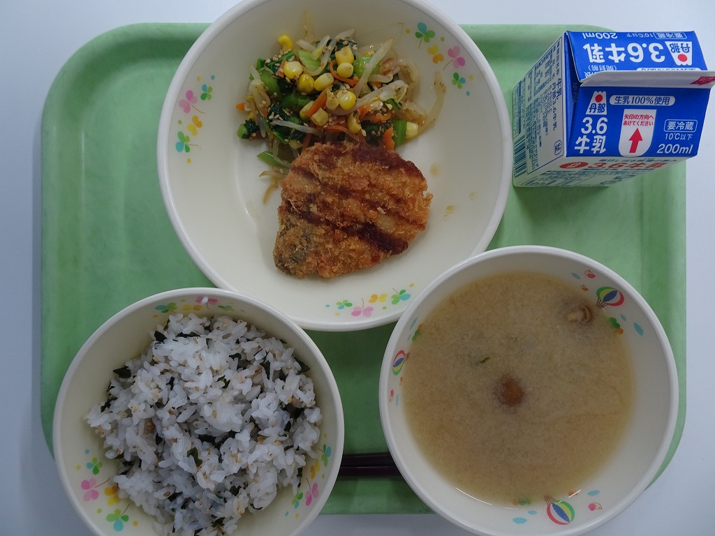 10/8(水)麦入りごはん アジフライ ちぐさあえ みそ汁