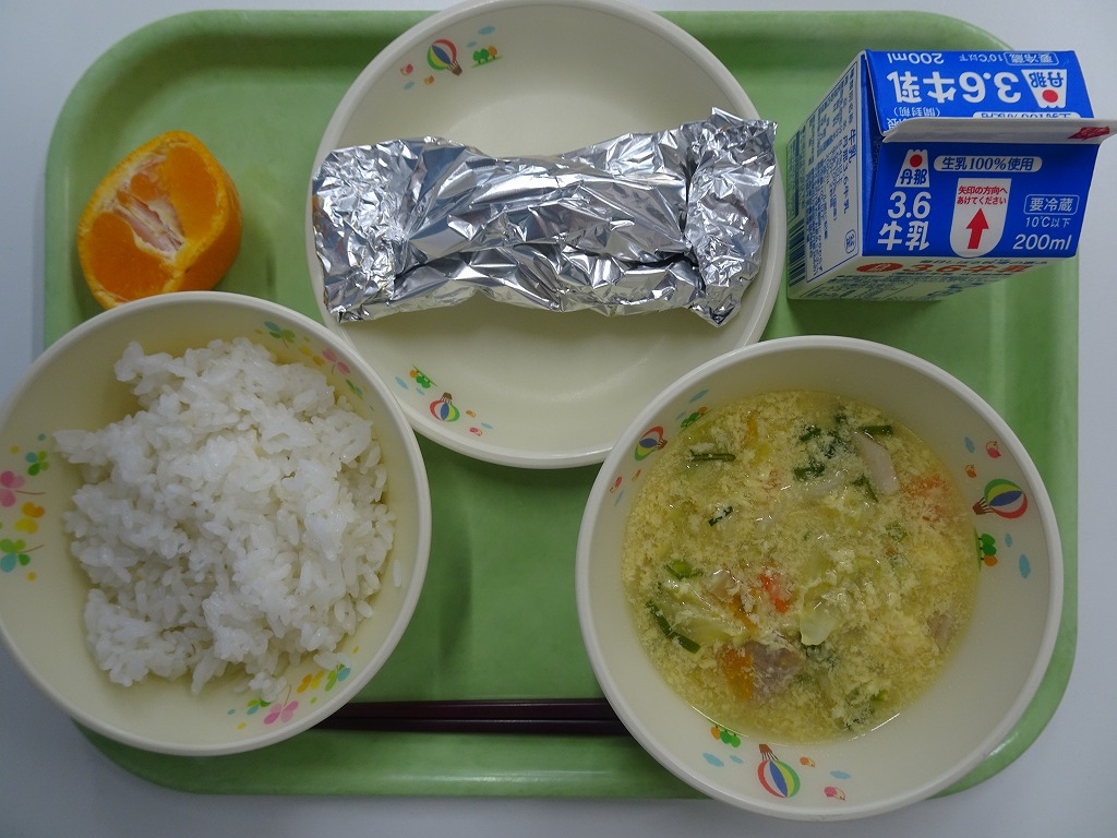 2/24(火)麦入りごはん サケのちゃんちゃんやき かき玉スープ みかん