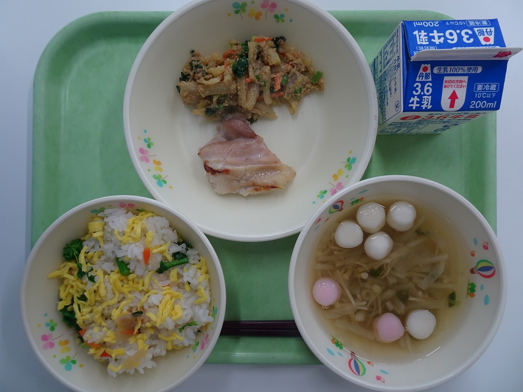 3/2(月)ひなまつりちらしずし とり肉の塩こうじやき ごまあえ すまし汁