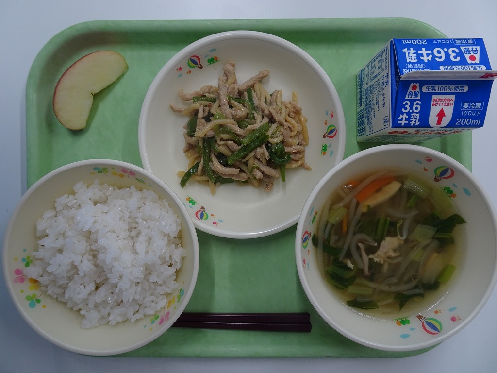 3/4(水)麦入りごはん チンジャオロース はるさめスープ りんご