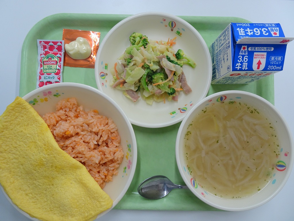 3/13(金)セルフオムライス ブロッコリーサラダ オニオンスープ かたぬきチーズ