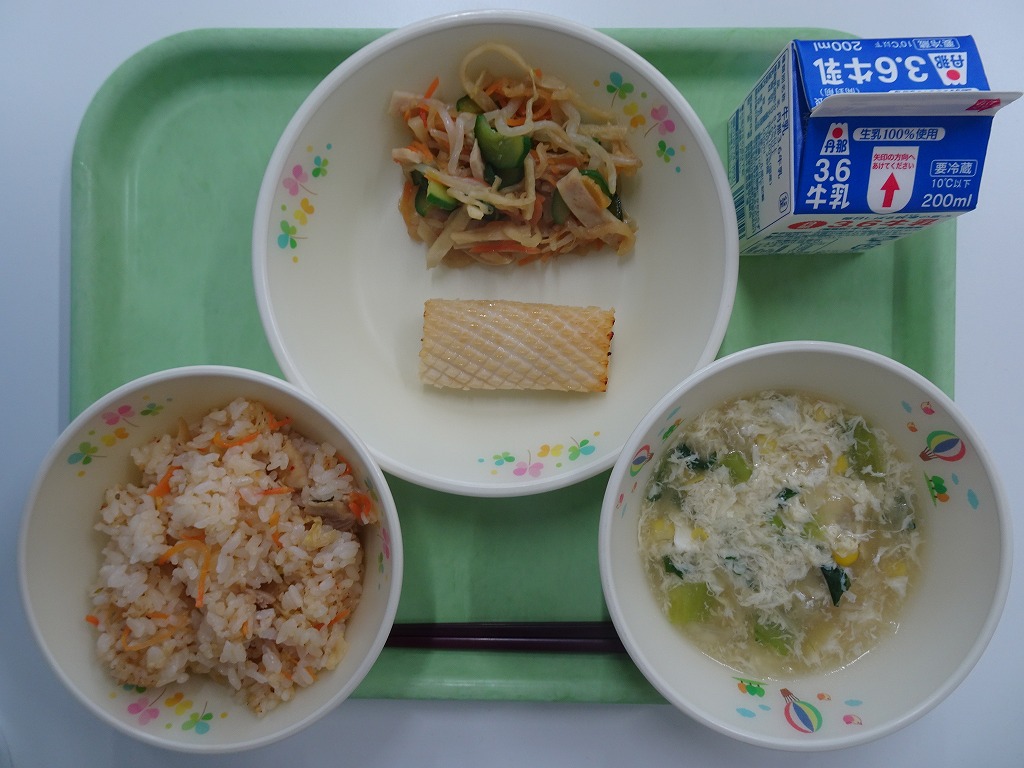 12/3(水)たきこみごはん シラスとあおさのあつやきたまご レンコンサラダ みそ汁